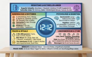 | Zahl | Kernbedeutung | Schlüsselwörter | Wirkung bei Doppelung/Spiegelung | Praxisimpuls |
